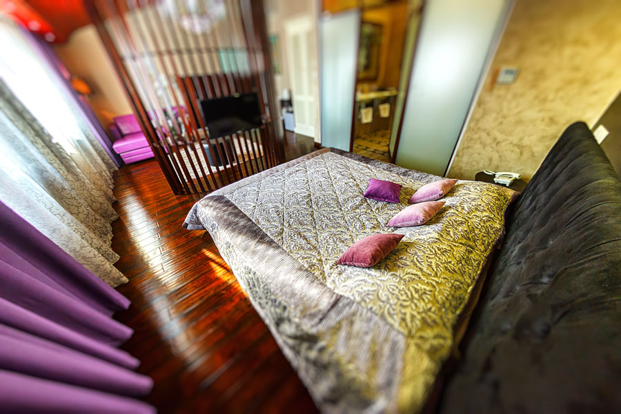 Эксклюзивный номер предназначен для комфортного размещение одного или двоих человек. В номере имеются две зоны гостиная и спальная. Зонирование выполнено деревянными балками, что эффектно подчеркивает необычный интерьер номера.